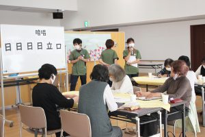 すべて お知らせ 広報誌 採用情報 研修・勉強会 情報公開 藤戸クリニック オレンジカフェ 2025/12/02 第32回「オレンジカフェあまちゃ」11月開催☕ 20人もの方々にお集まりいただき、盛大に大運動会を開催 参加者の方の開会宣言に始まり、ラジオ体操・玉入れ・箱引き・パン食い競争・応援体操・脚でマキ巻き・ホールインワンの競技 チーム対抗で行い、大接戦でとても盛り上がりまし […] オレンジカフェ 2025/11/11 第31回「オレンジカフェあまちゃ」10月開催☕ 今月のあまちゃは脳トレ三昧 “イントロ・ドン”、口ずさむのは簡単ですが、題名となると…🤔💭 歌手の名前が出ると曲名を思い出せたり 懐かしい曲がいっぱい挙がりました🎵 漢字組み立てクイズ 大きく分解した部首に混乱して何度も […] オレンジカフェ 2025/09/29 第30回「オレンジカフェあまちゃ」9月開催☕ 今月のテーマは「認知症」 頭と身体を同時に使って認知症予防体操 結構なスピード感に四苦八苦しながらも最後までやり遂げました👏 ミャンマーからの特定技能実習生を交えた脳トレ 各テーブルで和気あいあいと取り組んでいらっしゃい […] オレンジカフェ 2025/08/27 第29回「オレンジカフェあまちゃ」8月開催☕ 「茶屋町の鬼 保存会 鬼踊り部」の方が、鬼の姿で伝統的な踊りを披露✨ 小学生~80代で構成されたメンバー10人。 各人自分の好みの衣装と手作りの鬼面を付け、かわいらしい鬼や迫力満点の鬼など勢ぞろい👹 鬼たちの軽快な踊りに […] オレンジカフェ 2025/08/20 [オレンジカフェあまちゃ]9月開催のお知らせ 日 時 令和7年9月25日(木)10:00〜12:00 場 所 サンバードナーシングホームユニット型 大ホール倉敷市藤戸町藤戸1588-7 参加費 200円(飲み物・お菓子付) 内 容 認知症の話「最近物忘れが増えてきた […] オレンジカフェ 2025/08/14 第28回「オレンジカフェあまちゃ」7月開催☕ 夏休み、孫と祖母・曾祖母の参加者もいて賑やかでした わらべ歌“うさぎとかめ”に合わせて、1回目は両指を折りながら、2回目はグー✊・チョキ✌️・手拍子👏・パー🖐をしながら歌いました。 手拍子が間に入るだけで難易度アップ↗ […] オレンジカフェ 2025/07/31 [オレンジカフェあまちゃ]8月開催のお知らせ 日 時 令和7年8月21日(木)10:00〜12:00 場 所 サンバードナーシングホームユニット型 大ホール倉敷市藤戸町藤戸1588-7 参加費 200円(飲み物・お菓子付) 内 容 「茶屋町の鬼おどり」茶屋町鬼おどり […] オレンジカフェ 2025/06/27 第27回「オレンジカフェあまちゃ」6月開催☕ “認知症予防レクリエーション”の体操や脳トレを行いました 左右で異なる動きをする拮抗体操では難易度が上がるにつれ、悪戦苦闘される方がチラホラ💦 ミスなく出来ると嬉しそう😊 同じ部首のつく漢字を書く脳トレゲームは、2チーム […] オレンジカフェ 2025/06/26 [オレンジカフェあまちゃ]7月開催のお知らせ 日 時 令和7年7月24日(木)10:00〜12:00 場 所 サンバードナーシングホームユニット型 大ホール倉敷市藤戸町藤戸1588-7 参加費 200円(飲み物・お菓子代) 内 容 「ちょっと変わった?!昔遊び」わら […] オレンジカフェ 2025/05/28 第26回「オレンジカフェあまちゃ」5月開催☕ すがすがしい5月の新緑のもと、あまちゃカフェ開催 メインイベントに”あまちゃ 硬筆教室~きれいな字の書き方を学ぼう~“ 講師は茶屋町ご出身、御年97歳の佐藤圭一先生👏 先生が考案された『四角法』で書き方を学びました。 み […] オレンジカフェ 2025/05/27 [オレンジカフェあまちゃ]6月開催のお知らせ 日 時 令和7年6月26日(木)10:00〜12:00 場 所 サンバードナーシングホームユニット型 大ホール倉敷市藤戸町藤戸1588-7 参加費 200円(飲み物・お菓子代) 内 容 「認知症予防レクリエーション」認知 […] オレンジカフェ 2025/05/02 第25回「オレンジカフェあまちゃ」4月開催☕ 春はあっという間で、すっかり初夏の陽気ですが、今回のメインイベントは”桜もち作り” 準備がちょっと間に合わず、まずは体操から 身体と頭をしっかり使った体操と嚥下体操 (お口の体操) です 運動の後 […] オレンジカフェ 1 2 3 4 →