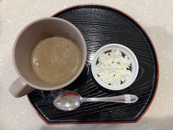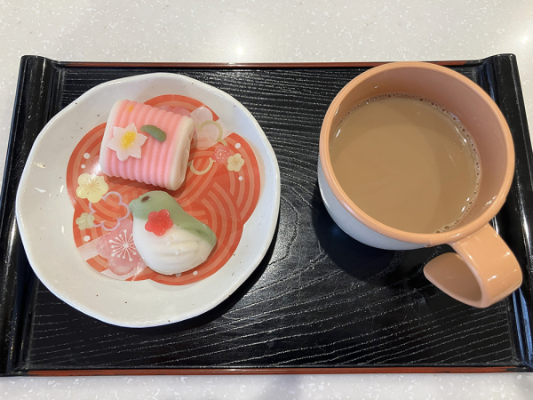 ウグイスの練り切りや和菓子風ムースなどのスイーツと、お好きなドリンクでおもてなし